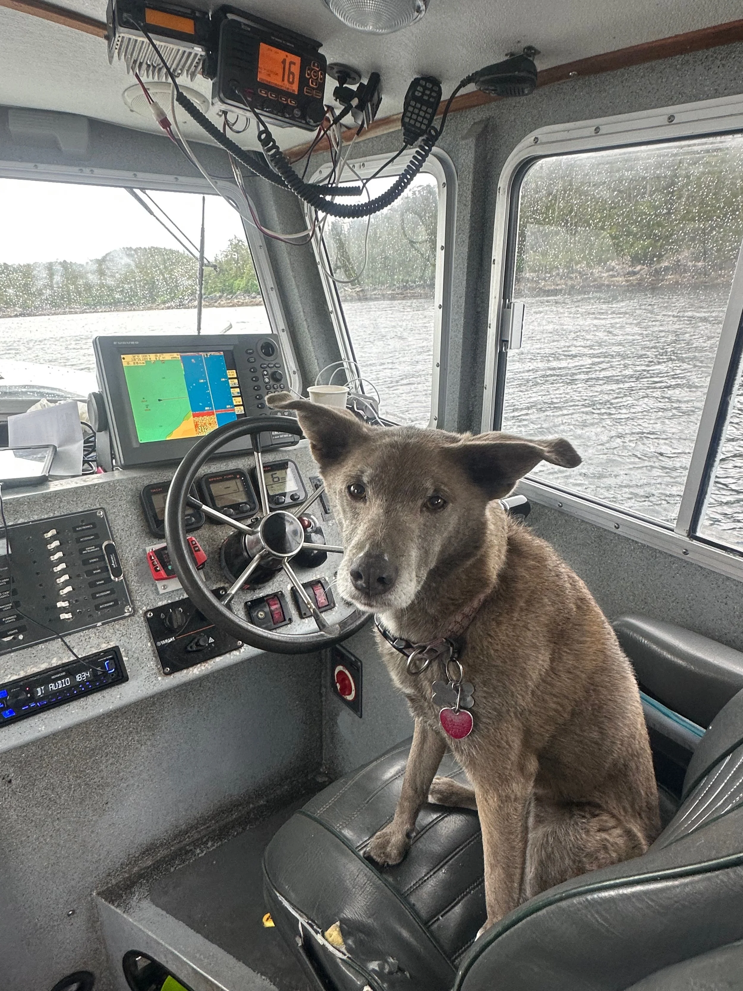When she’s not posted on the bow enjoying the sea breeze, Khali can usually be found greeting guests, soaking up the scenery, or napping between fishing stops. Her calm presence and friendly personality make her a favorite among guests of all ages.